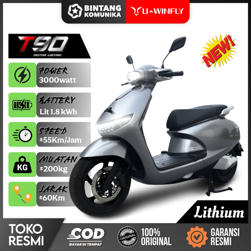 Motor Listrik Uwinfly T90 Lithium, LANGSUNG KIRIM, Garansi Resmi Nasional Uwinfly Indonesia