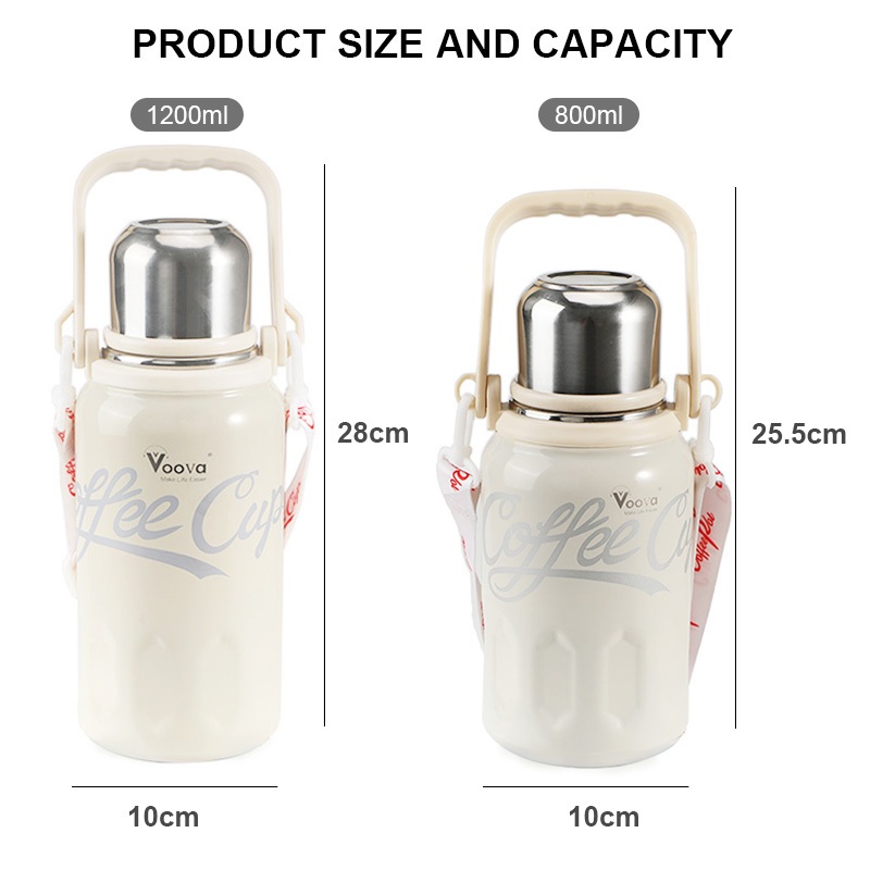 VOOVA 800ML /1200 ML Botol Minum Stainless Steel 304 Termos Air Panas/ Gelas Termos Stainless Steel