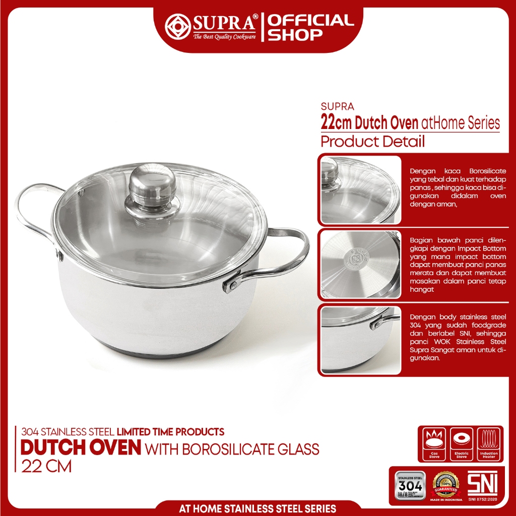 SUPRA PANCI Stainless Steel SUS 304 Dutch Oven 22 Cm Professional At Home Series