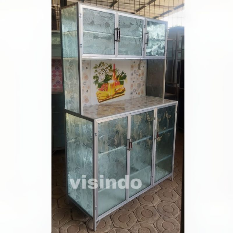 RAK DAPUR RAK PIRING ALUMUNIUM KERAMIK 3 PINTU RATA BAWAH KERAMIK