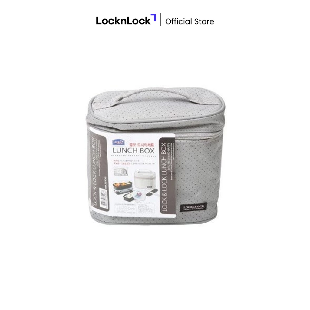 LocknLock Lunch Box Set 3Pcs With Gray Bag, Spoon & Fork - HPL754DG