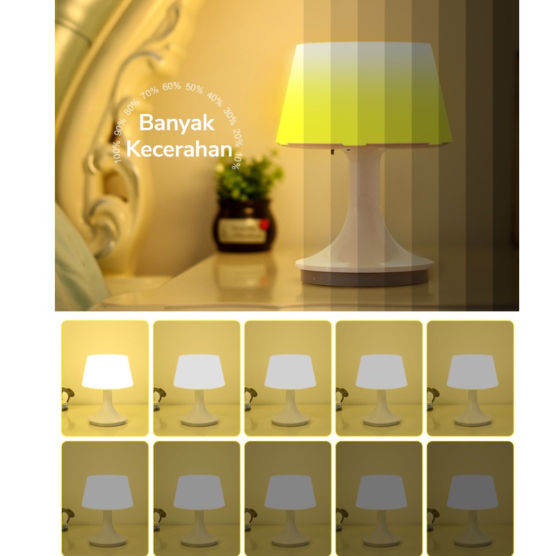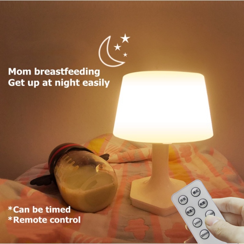 Lampu Tidur LED 3 Warna Lampu Kamar Tidur Remote Control Lampu Meja Belajar USB Lampu Meja LED 1200mAh