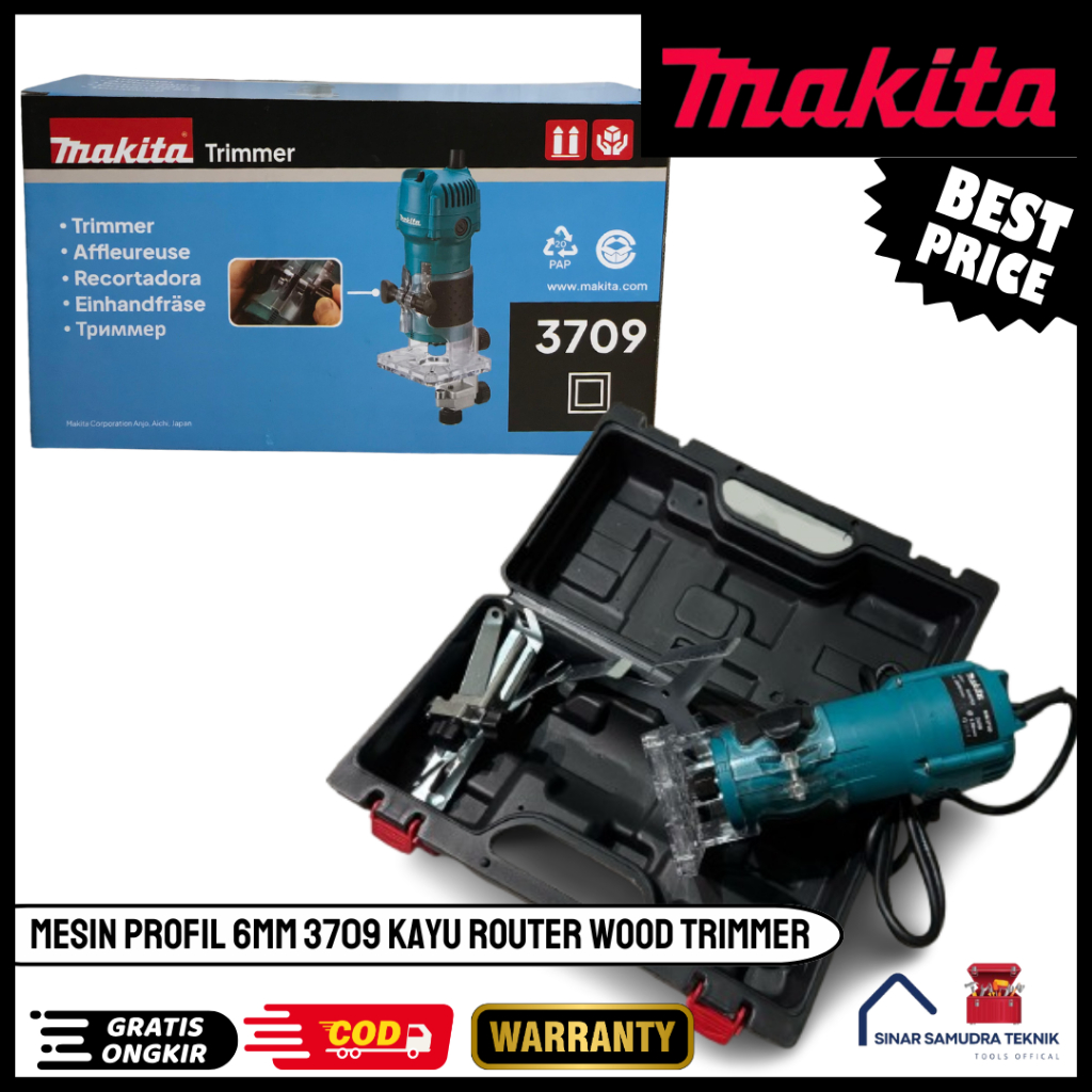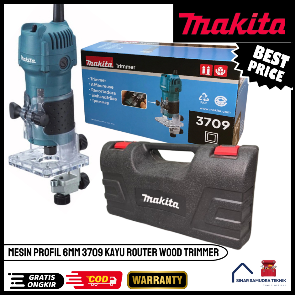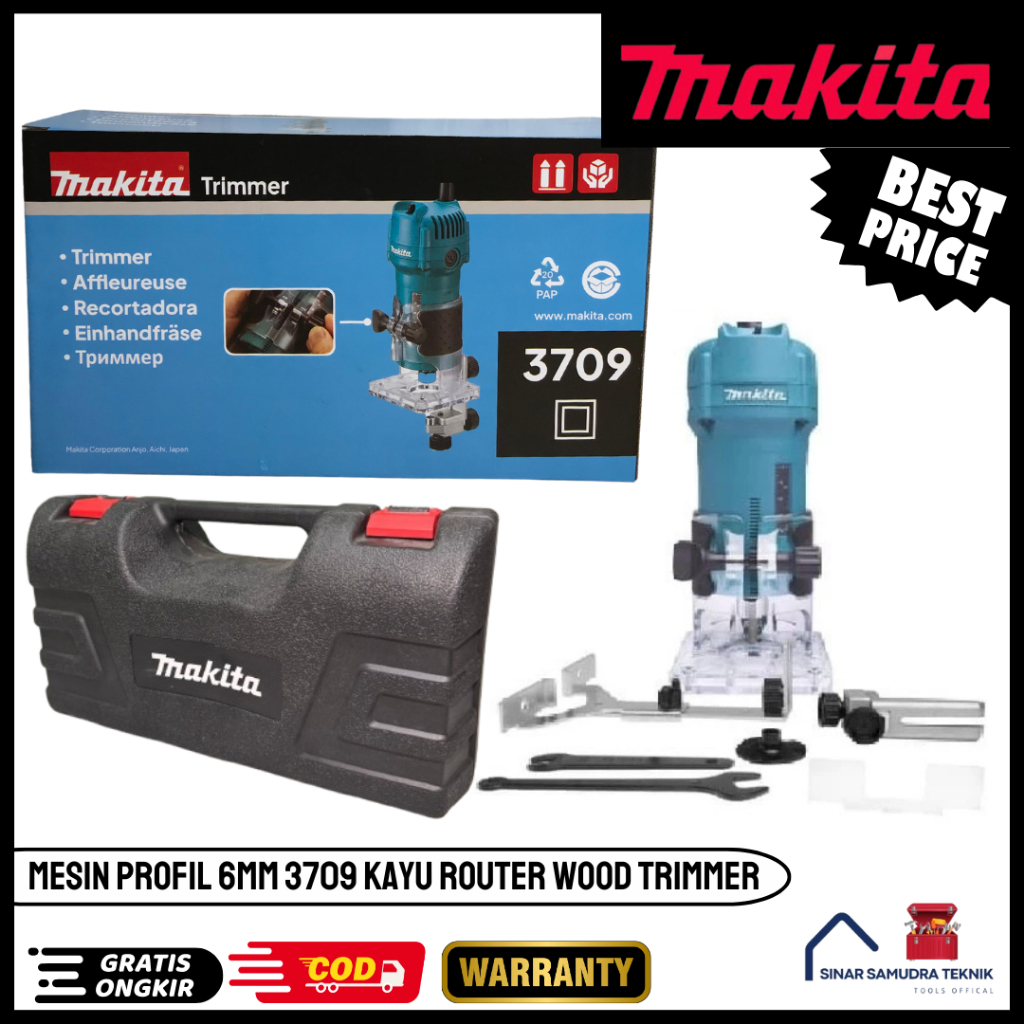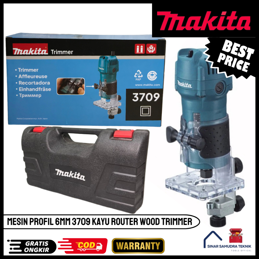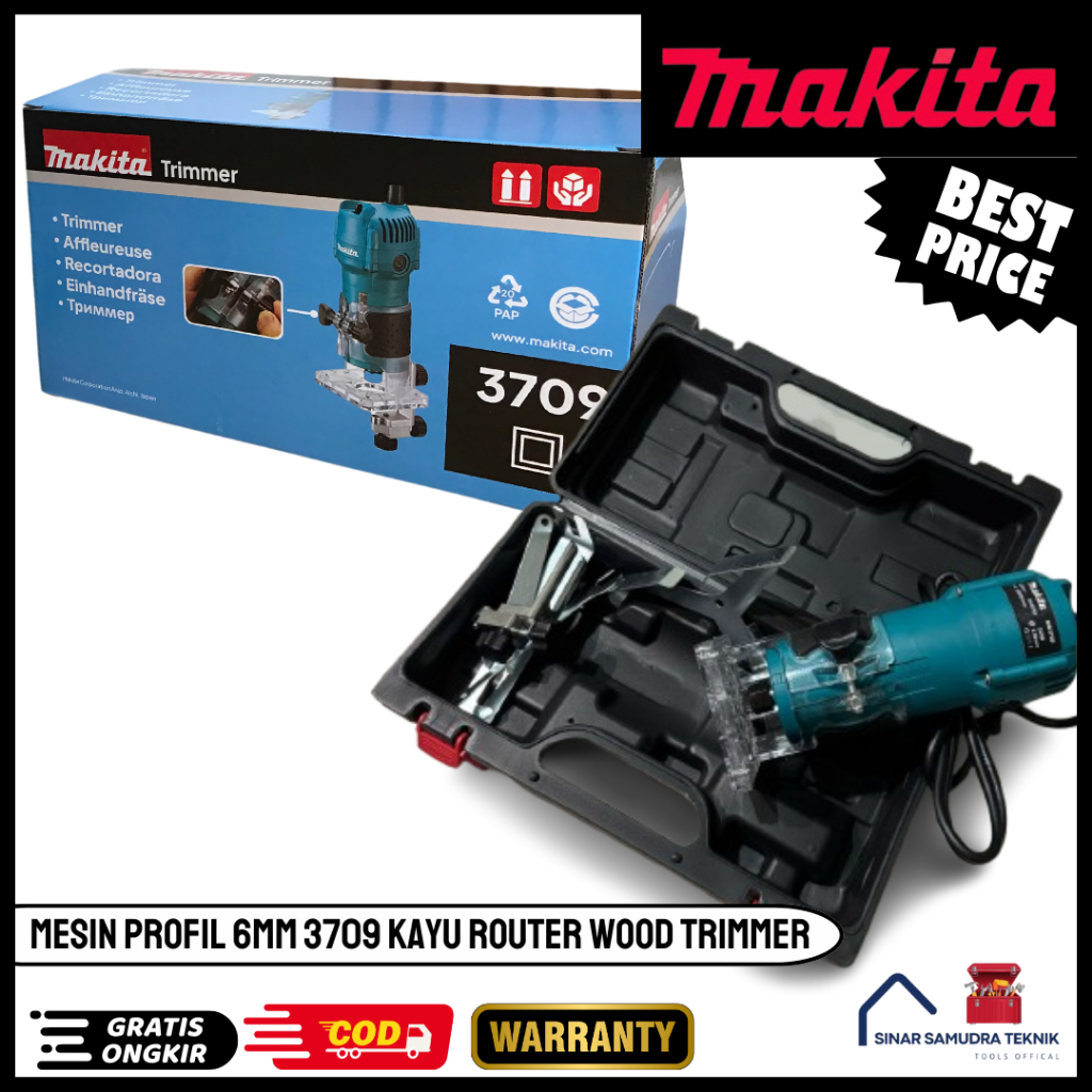 Mesin Trimmer/Profil Makita 3709 - Mesin Kayu 6mm, Daya Listrik 530 Watt