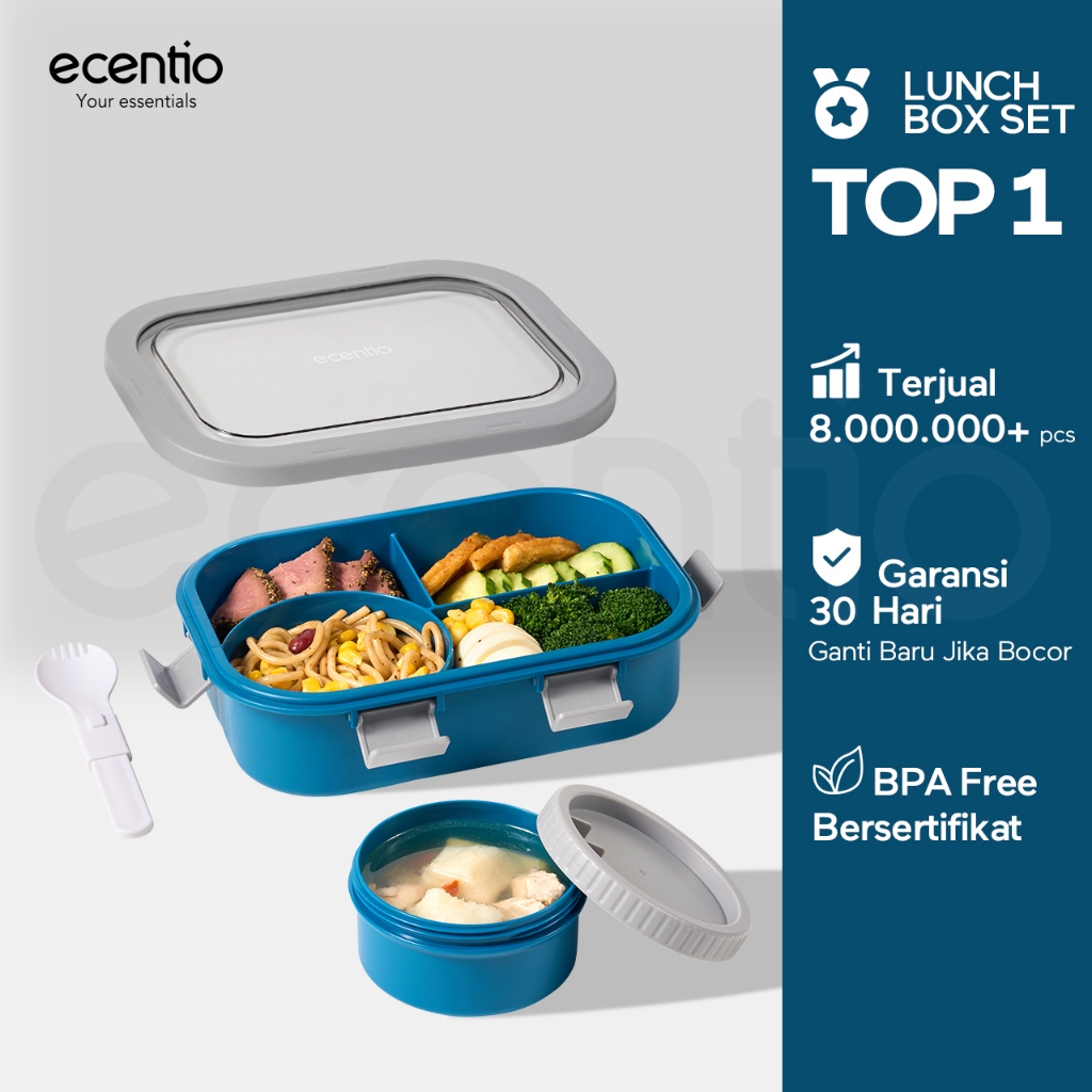 ecentio tempat makan Kotak Makan Lunch Box anti tumpah 1.4L mangkuk sup+sendok BPA Free