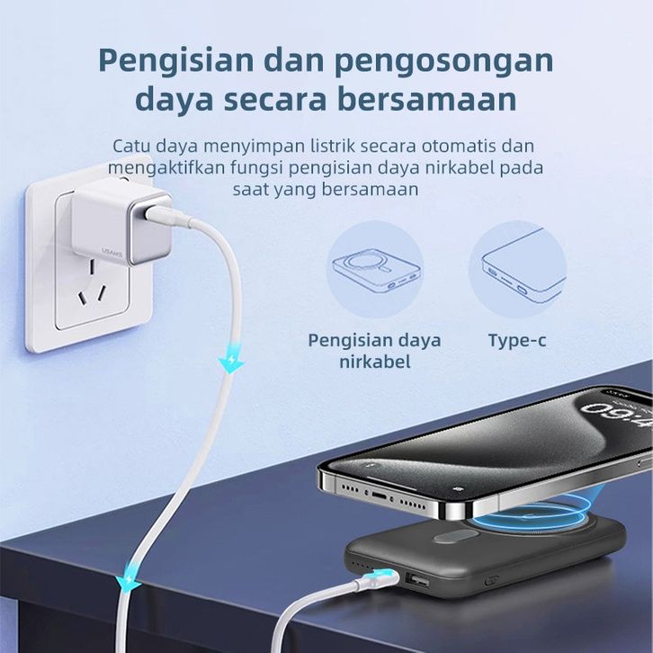 Power Bank Fast Charging HOT KIVEE Powerbank Magnetic Wireless+Wired Mini Fast charging PD 20W Tipis ringan