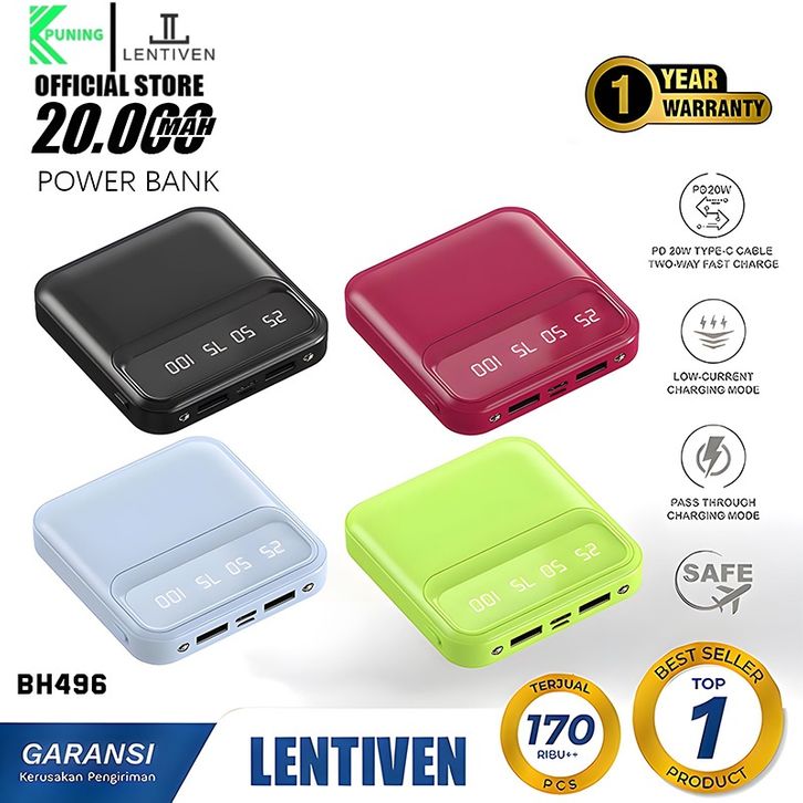 Power Bank Fast Charging PUNING LENTIVEN 20000mAh PowerBank Mini Digital Display Fast Charging BH496