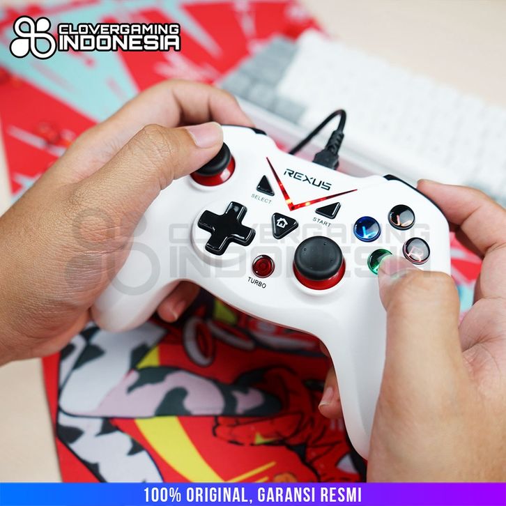 Stick Game Rexus Gamepad GX2 - Turbo, Multi Koneksi, Hitam/Putih