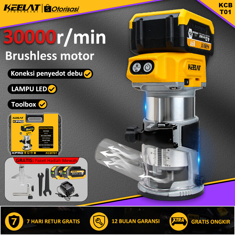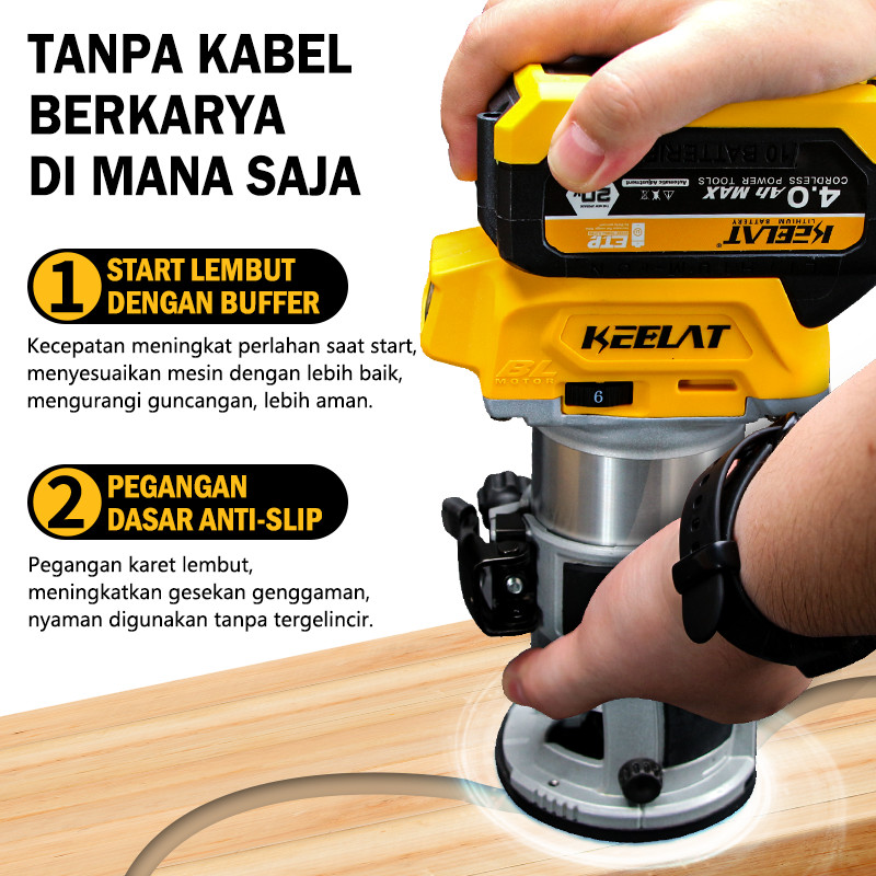 KEELAT-KCBT01 Brushless Mesin Profil Router Laminate Trimmer Pembentuk Kayu Wood 20V Listrik 1200W