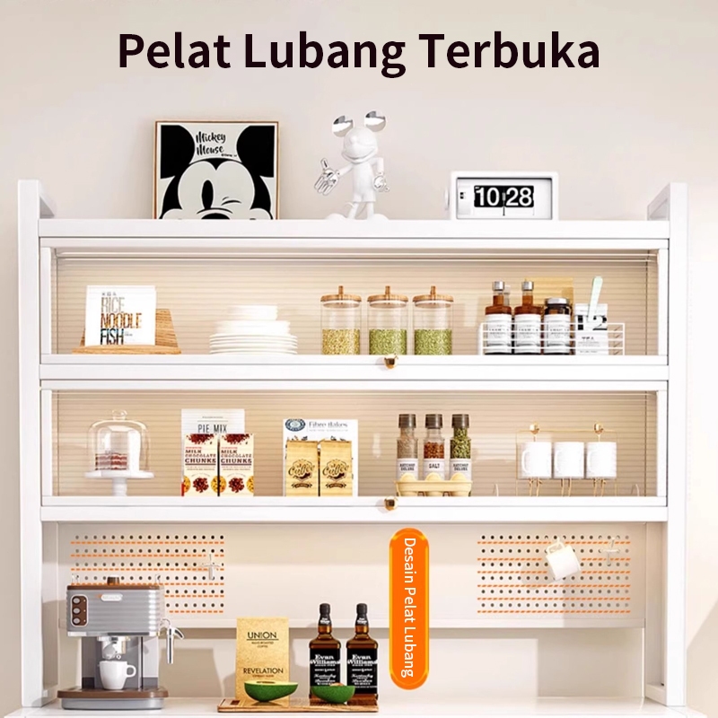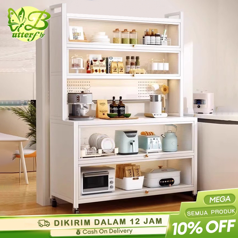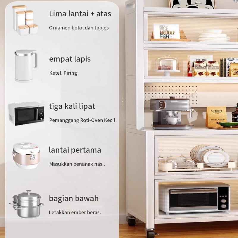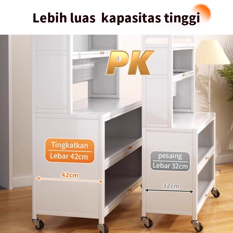 Lemari Dapur Minimalis Rak Dapur Serbaguna Rak Penyimpanan Dapur Rak Piring Oven Microwave Dengan Roda Pintu