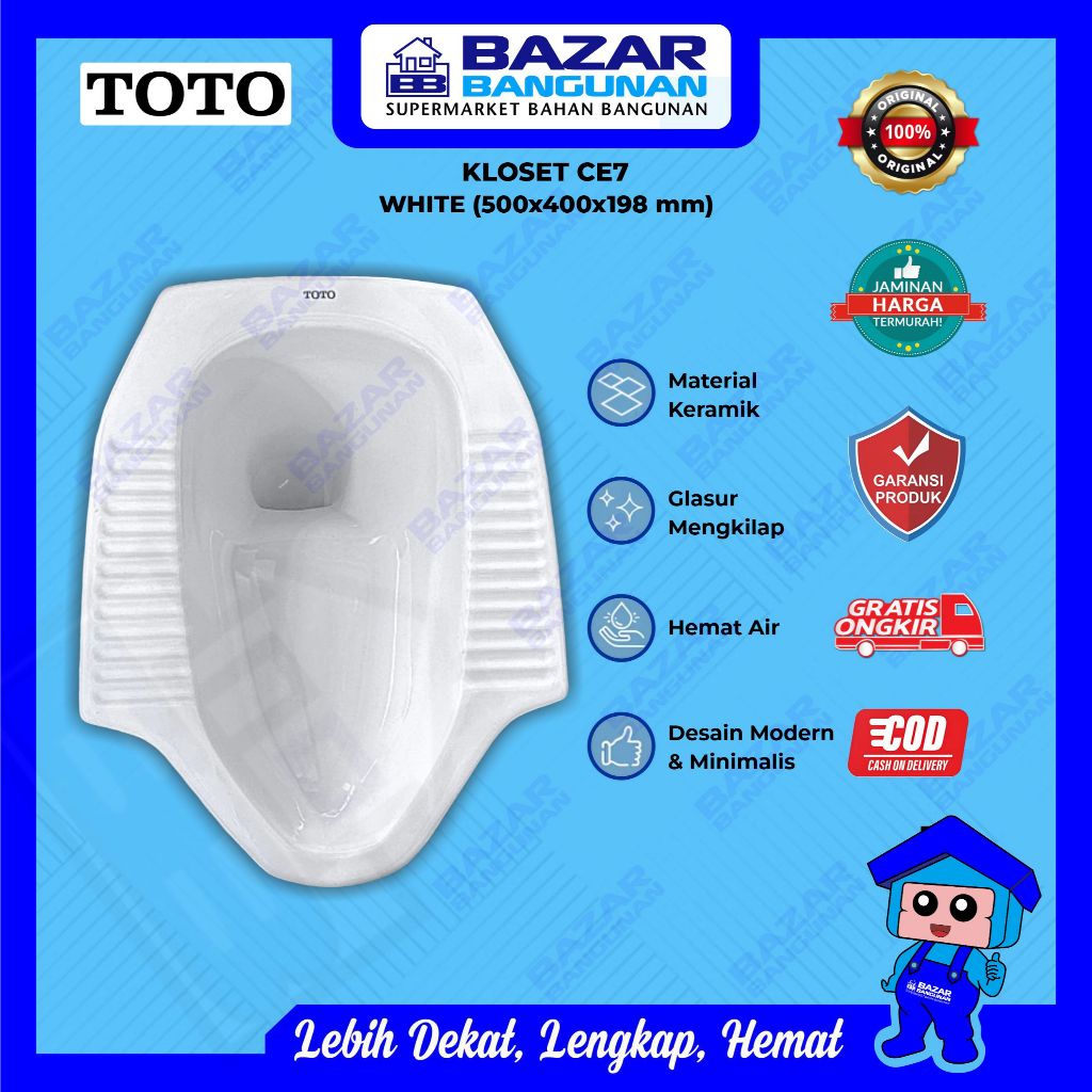 Toto - Closet Kloset Toilet Jongkok Squat WC CE7 CE 7 White Putih Lantai Dasar Garansi Resmi Pabrik