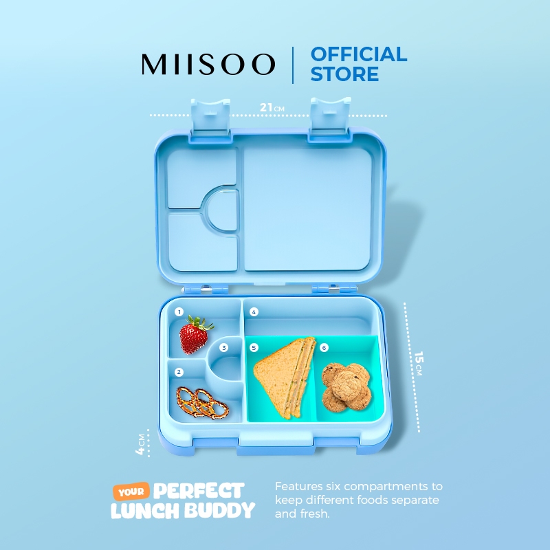 MIISOO Lunch Box Kotak Bekal Makan Kotak Makan 6 Sekat Tempat Makan Anti Tumpah BPA FREE/Kotak Makan Bento Anak SnackBox