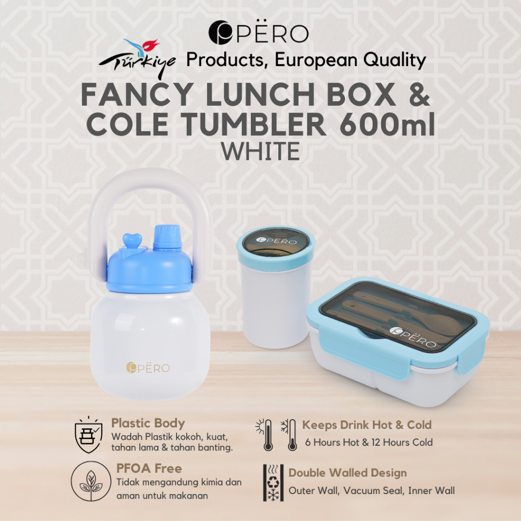 Pero Set of 2 Lunch Box Fancy With 2in1 Soup Container & Permos Cole Tumbler 600ML / Bundling Tumbler dan Tempat Makan A
