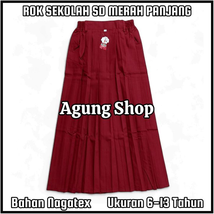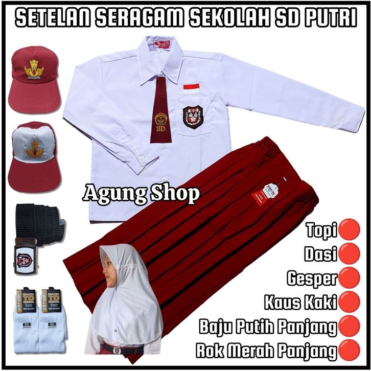 Setelan Seragam Sekolah SD Merah Putih Anak Perempuan Baju Putih Lengan Panjang Rok Merah Panjang