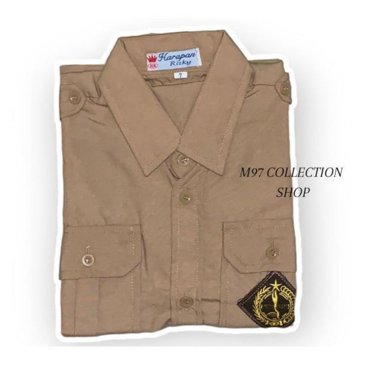 Baju Pramuka Lengan Pendek Laki Coklat Seragam Sekolah SD SMP SMA Cowok Pramuka Penggalang - baju
