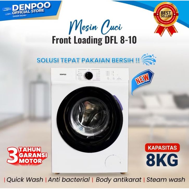 DENPOO Mesin Cuci Front Loading 1 Tabung DFL 8-10 8 KG