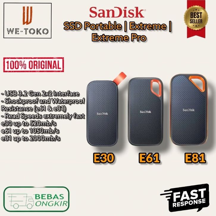 SSD External Portable SSD EXTERNAL SANDISK PORTABLE SSD EKSTERNAL 520/1050/2000 MB/S USB 3.2 - E30 E61 E81 Free Kabel