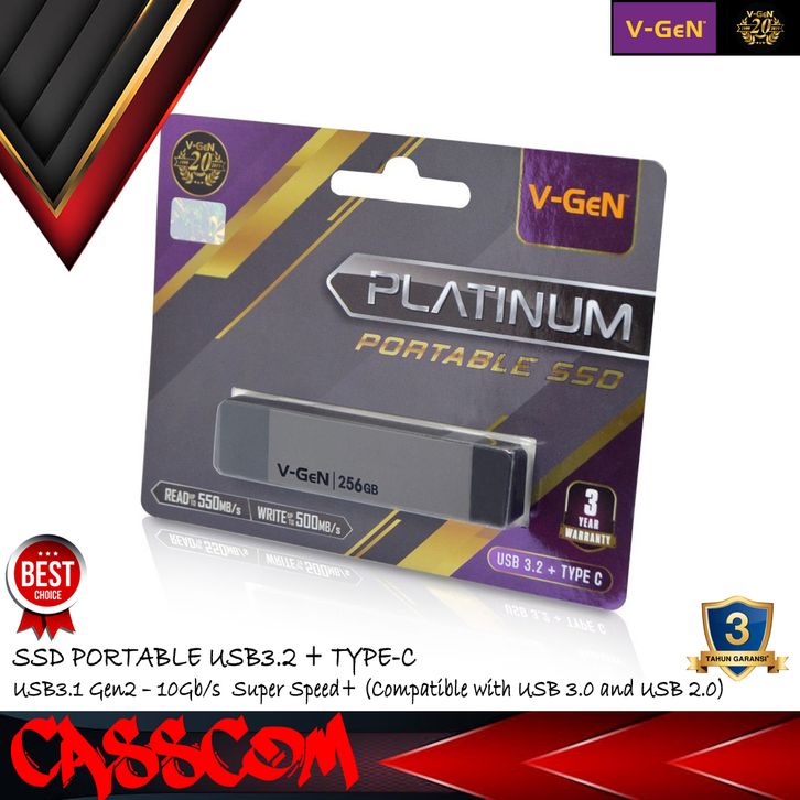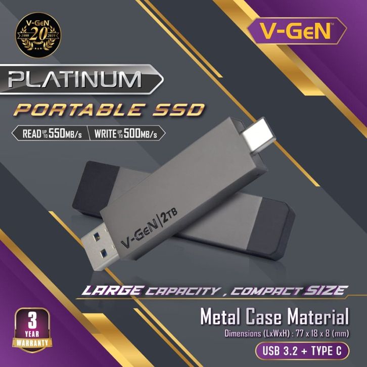 SSD External Portable V-GeN SSD Portable Platinum 256GB USB 3.2 Type-C External Vgen 256 GB