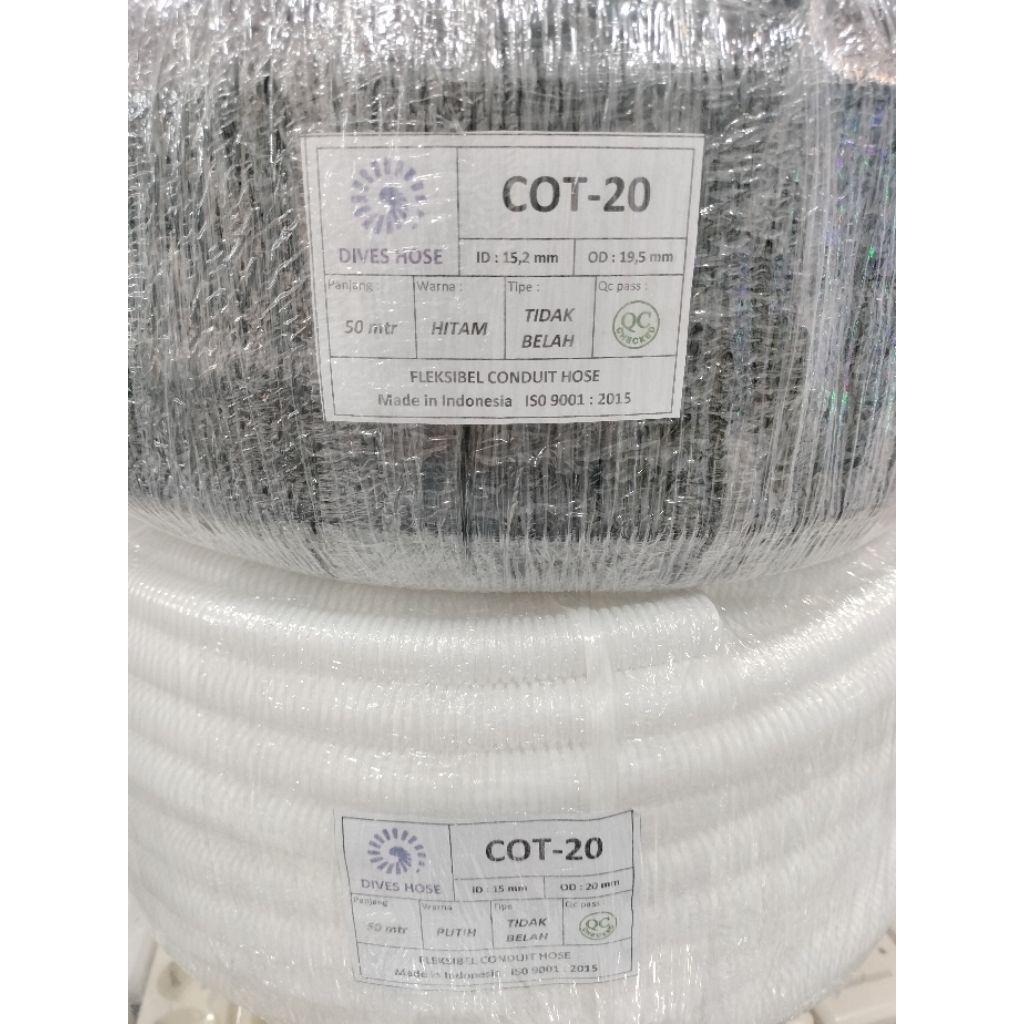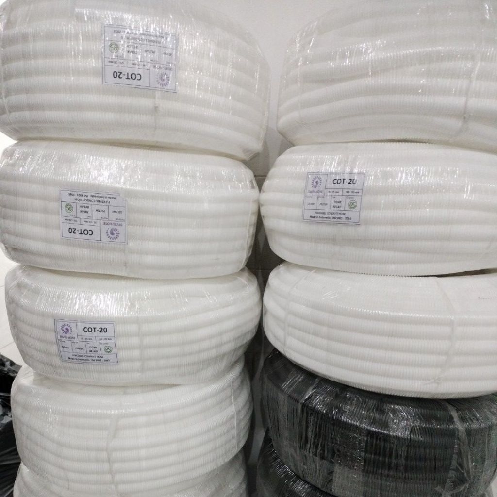 SELANG FLEXIBLE PIPA CONDUIT PEMBUANGAN AIR AC PANJANG 50 METER FULL 20MM WARNA HITAM PUTIH
