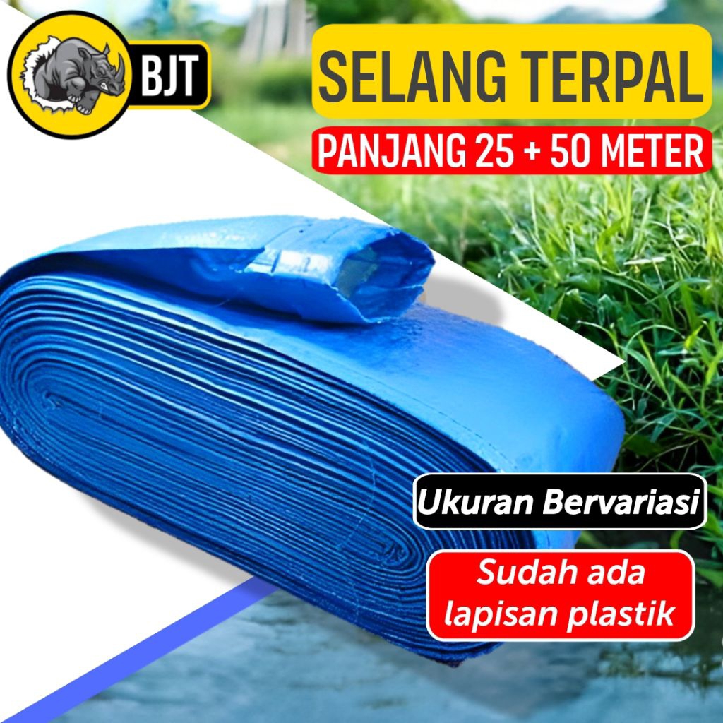 Selang Terpal Lapisan Plastik 1,2,3,4,5,6 dan 8 Dim/Inch Panjang 25 Meter/50 Meter Cap Badak