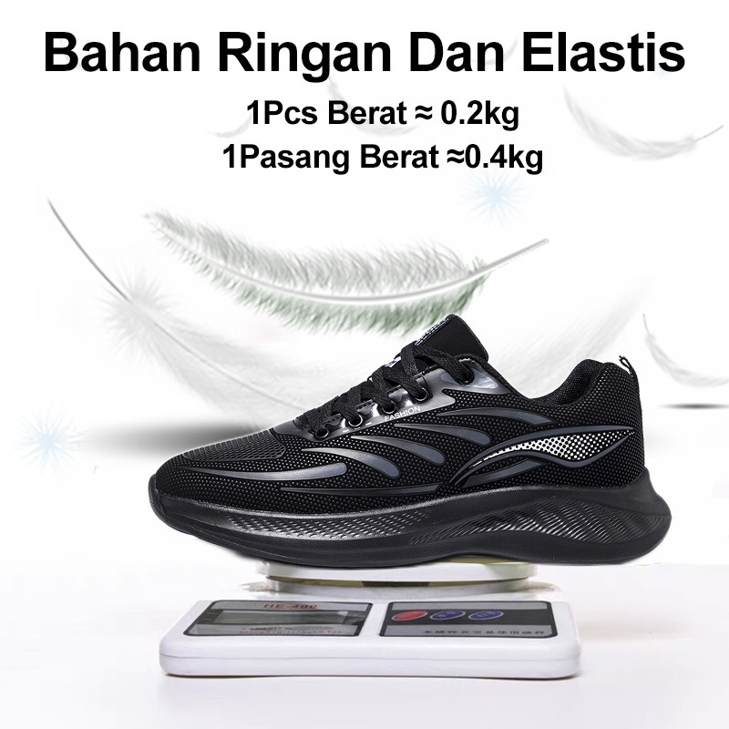 Keeping Sepatu Sneakers Pria Hitam Sepatu Lari Ringan Olahraga Sekolah Sport Running Shoes KSL304