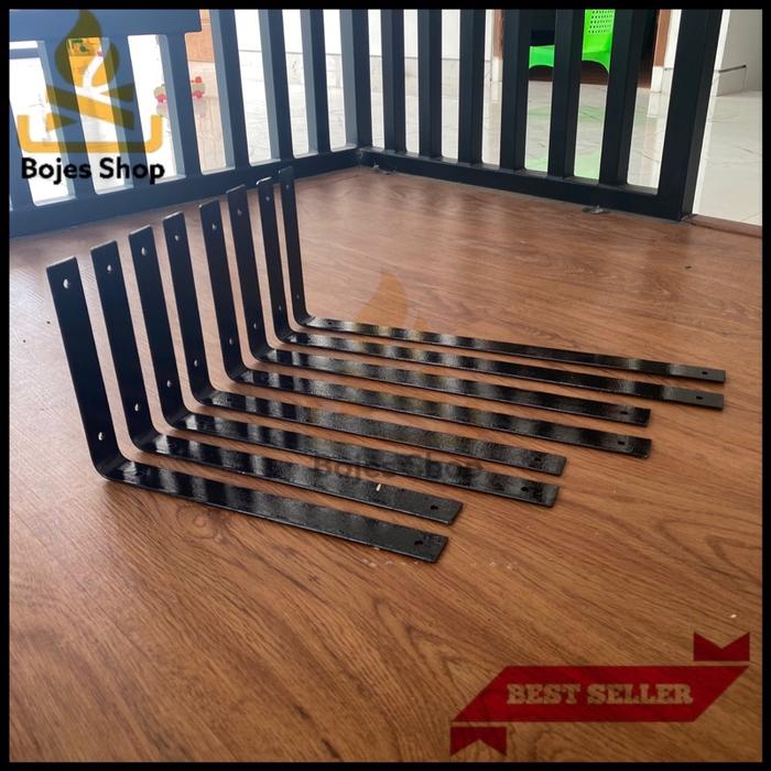 BESI SIKU L PENYANGGA RAK DINDING AMBALAN BESI PANGKON PENOPANG RAK AMBALAN DINDING PANJANG SAMPAI 40CM HITAM 15CMX25CM