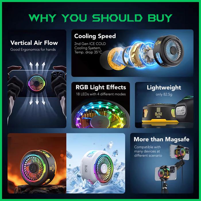 BLACK SHARK MAG COOLER 5 HYBRID MAGNETIC CLIP KIPAS PENDINGIN INSTANT COOLDOWN 35 C 1 YEAR WARRANTY BLACK