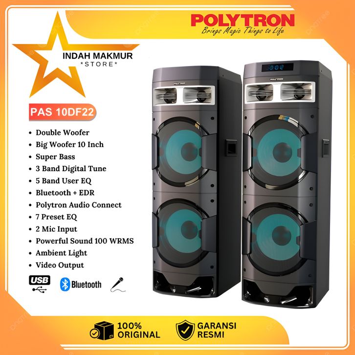 SPEAKER AKTIF POLYTRON PAS 10DF22 USB BLUETOOTH KARAOKE SUPER BASS ORIGINAL GARANSI RESMI