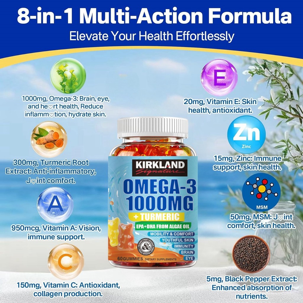Omega 3 with EPA DHA 8 in 1 Multivitamin Gummy Dukung Fokus, Imun & Tumbuh Kembang Anak Suplemen Sehari-hari untuk Otak,