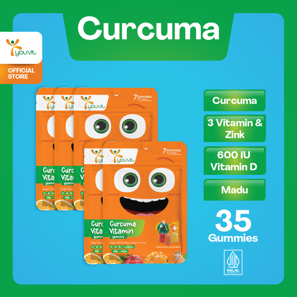 Youvit Curcuma & Vitamin Anak 35 Hari (5 Shet) dengan Curcuma, Zink, dan Madu | Meningkatkan Nafsu Makan Anak