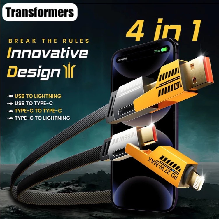 Kabel Data Fast Charging 4 IN 1 USB Type A Type C OS Multiple Charging 27W + 65W Metal Data Cable