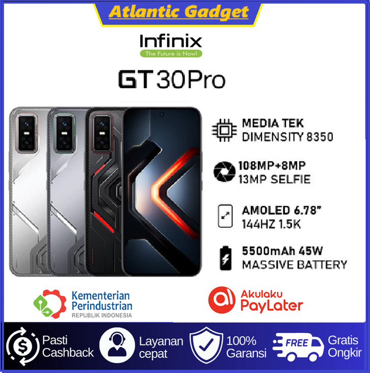 Hp Infinix GT 30 Pro 5G RAM 12/512GB | MediaTek Dimensity 8350 | Kamera 108MP | Layar 6.78" AMOLED | Baterai 5500mAh 45W