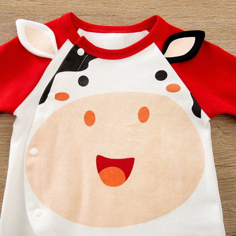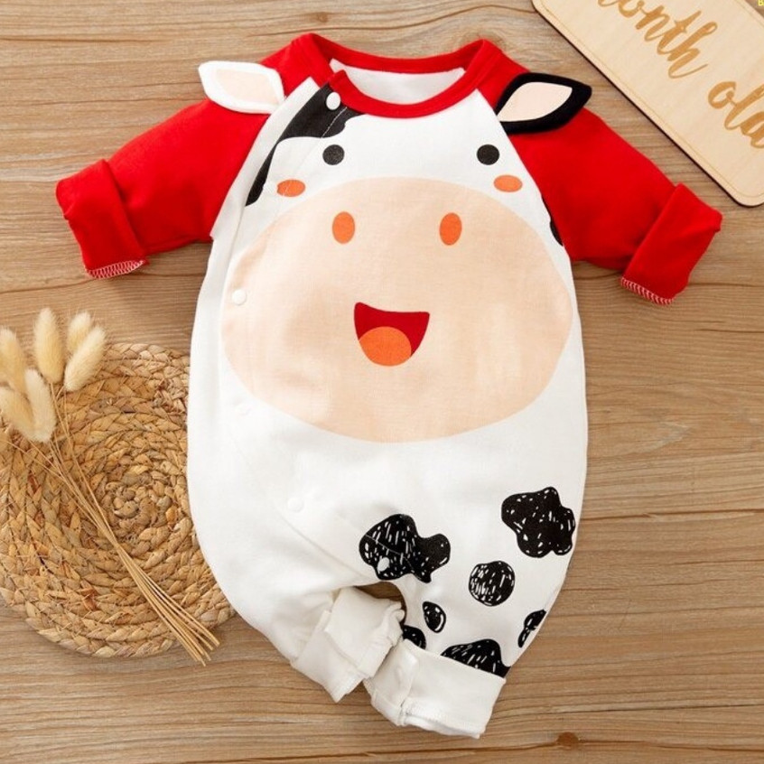 Jumpsuit Bayi Unisex Karakter Sapi – Bahan Katun Lembut & Tebal, 0–18 Bulan