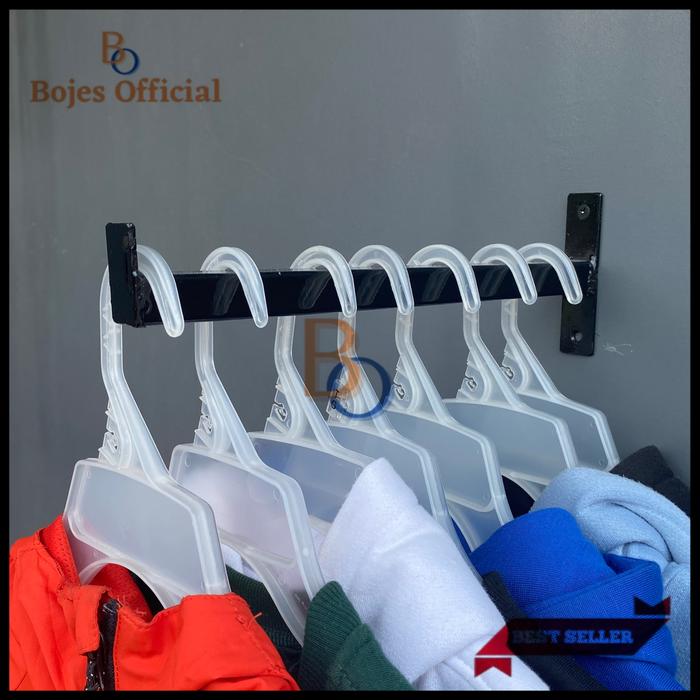 BESI GANTUNGAN HANGER BAJU CAPSTOK DINDING HITAM 30CM