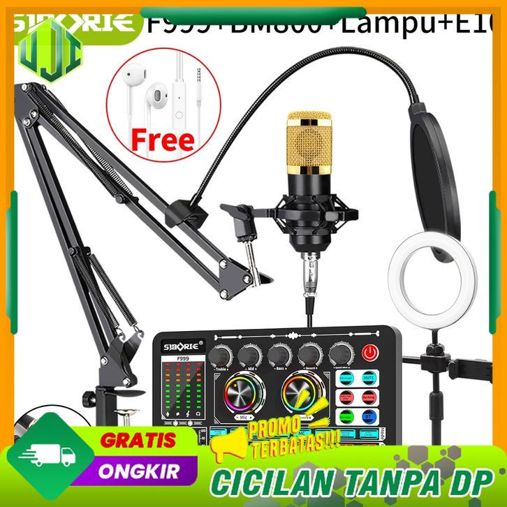 【Free headset】F999 soundcard+BM800 mic+Lampu+E10 headset Paket Komplit Full Set Paket recording lengkap Streaming