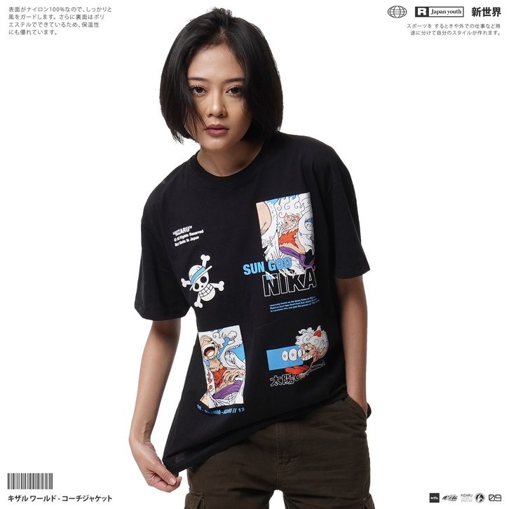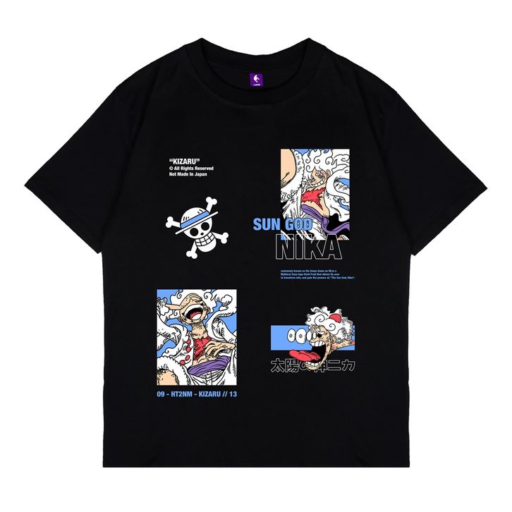 KAOS COWOK KIZARU KAOS PRIA HITAM T-SHIRT ANIME LUFFY SUN GOD NIKA