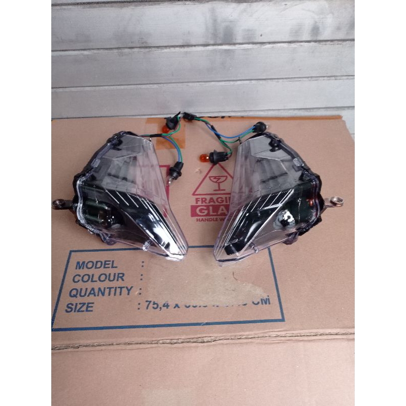 REFLEKTOR LAMPU SEIN SEN DEPAN SOUL GT 125 BLUECORE KANAN KIRI COSTUM HITAM OREN