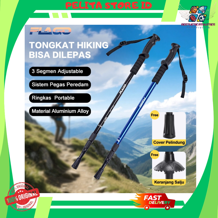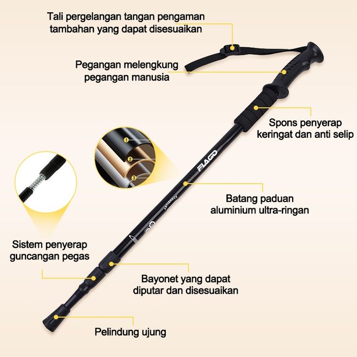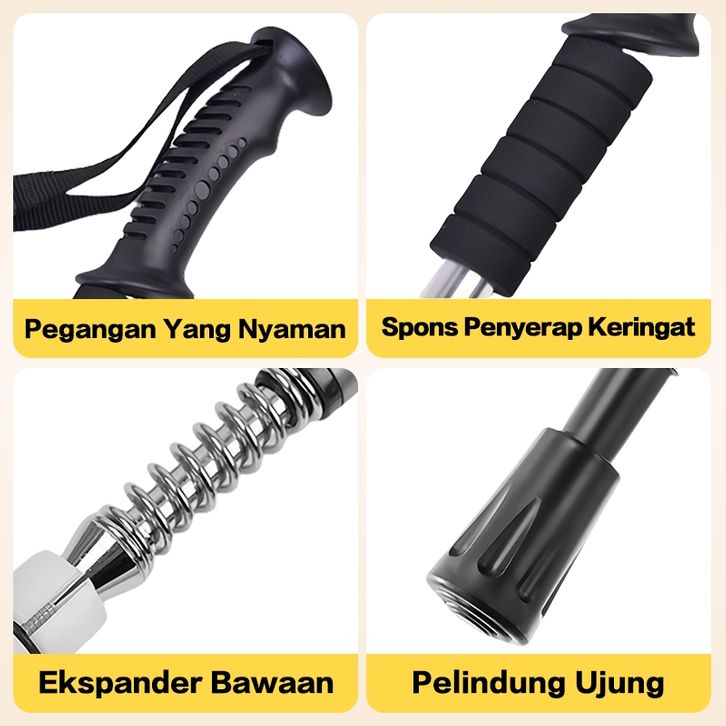Tracking Pole Lipat Tongkat Gunung Trekking Hiking Dapat Diatur Sesuka Hati 65-135cm