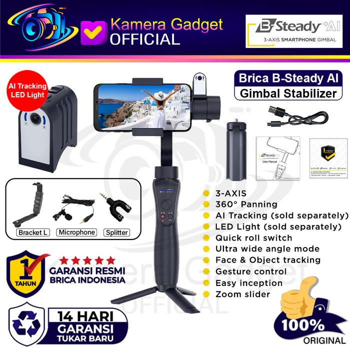 FLASH SALE BRICA BSTEADY AI BSTEADY AI 3AXIS GIMBAL STABILIZER FOR SMARTPHONE HP & ACTION CAM ORIGINAL RESMI UNIT ONLY PAKET STANDAR