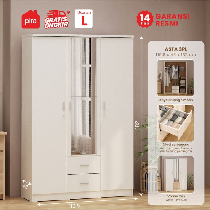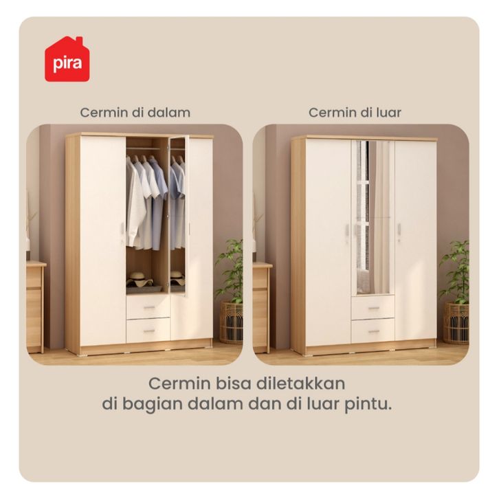 Official Shop Pira Metropolis Lemari Pakaian Gantung OX Asta 3 Pintu Kayu Aluminium minimalis modern Berkualitas 2025