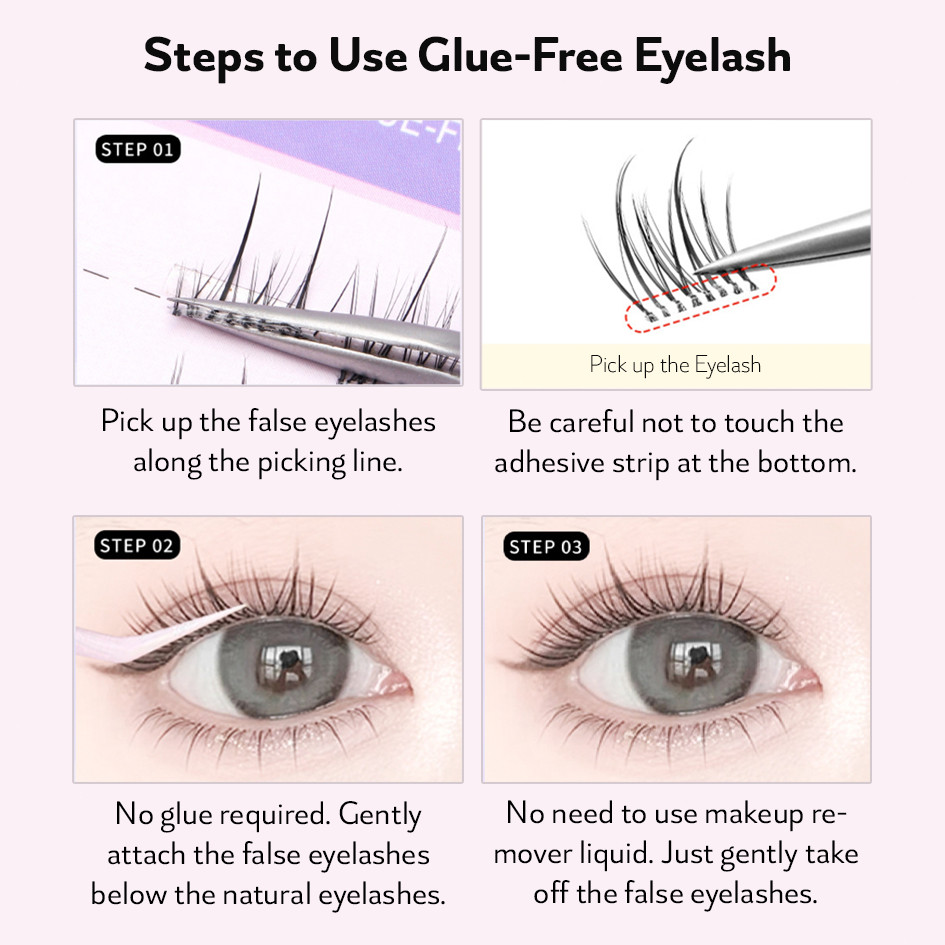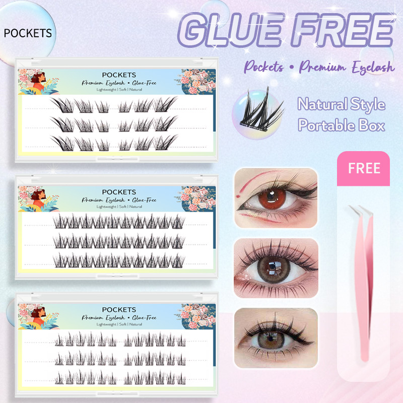 POCKETS Portable Size Glue-Free Eyelash Bulu Mata Palsu Tanpa Lem Natural Eyelash Extension FREE Tweezer