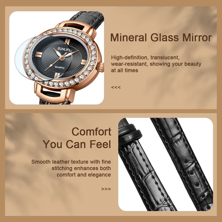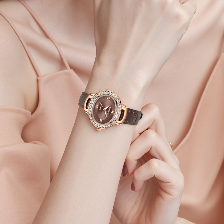 Sunlifex Jam Tangan Wanita Original Korea Kuarsa Antik Tali Kulit Kasual Oval Jam Tangan Cewek E052