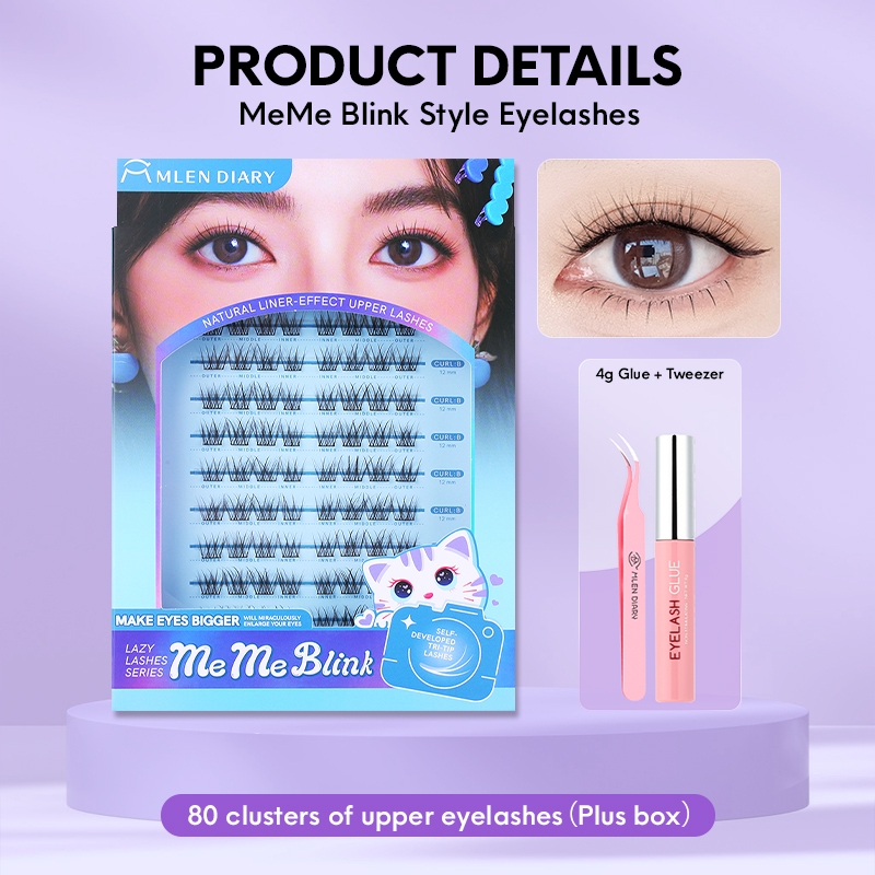 MLEN DIARY Bulu Mata Meme Blink Gentle Cat Eyes Trltip Lashes Natural Eyelashes Bulu Mata Palsu + Lem