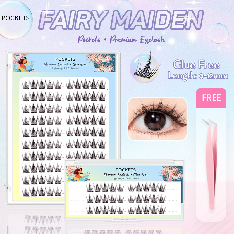 POCKETS Glue-Free Eyelash Bulu Mata Palsu Tanpa Lem FAIRY MAIDEN Eyelash Extension FREE Tweezer