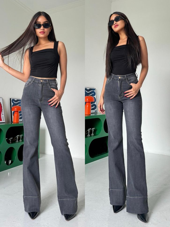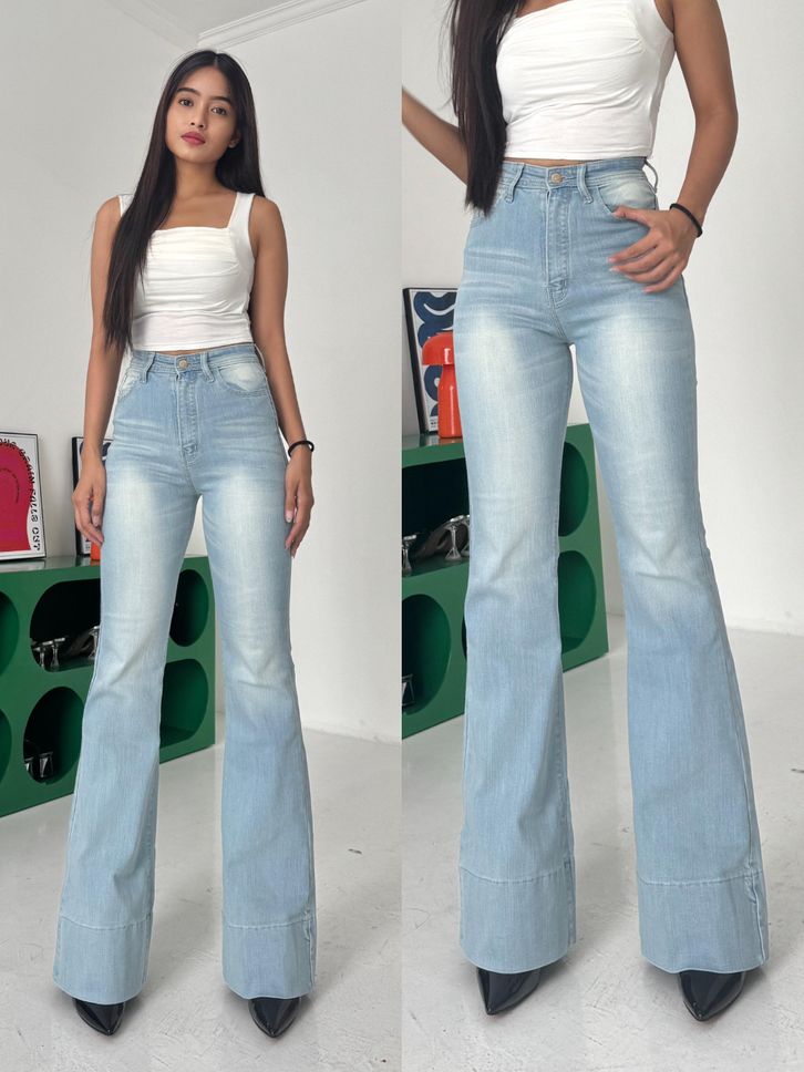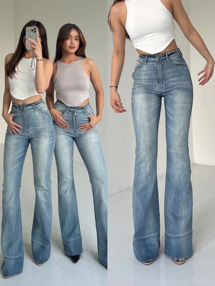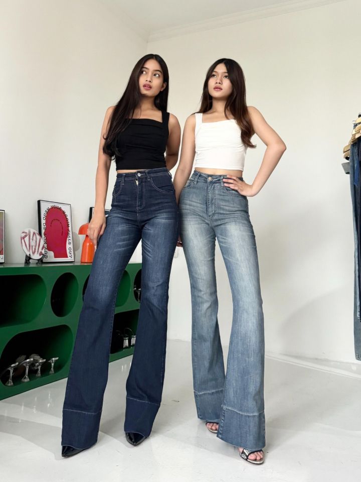 Celana Jeans Wanita Cutbray Highwaist Flare Panjang Stretch