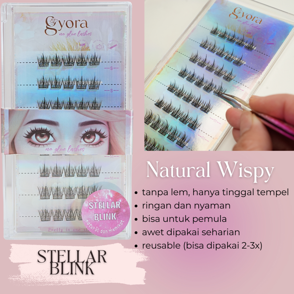 Gyoralash [Bisa ] Langsung Tempel | Stellar Blink | False Eyelashes No Glue | Bulu Mata palsu Natural tanpa Lem | Bulu M