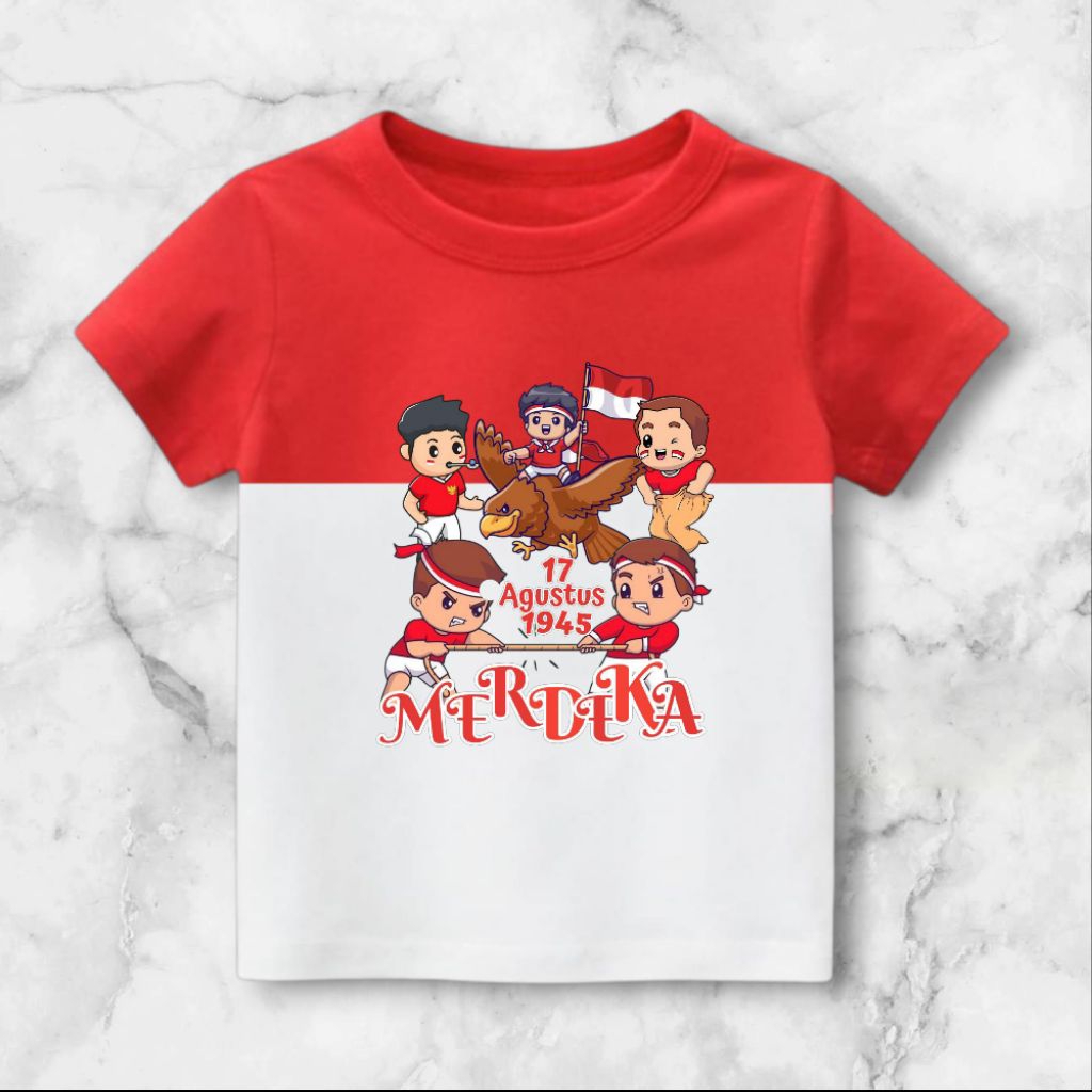 KAOS ANAK-ANAK AGUSTUSAN UNISEX UMUR 1-9 TAHUN/KAOS KOMBINASI MERAH PUTIH