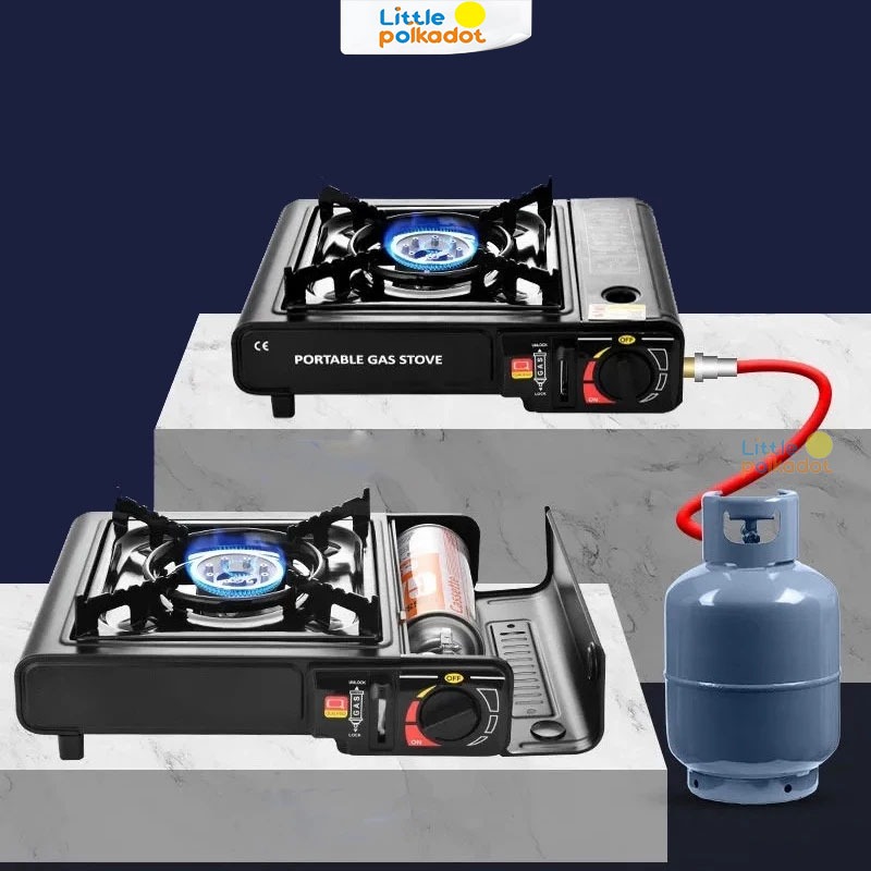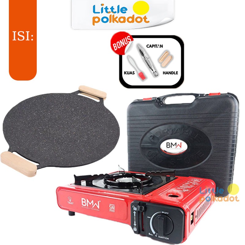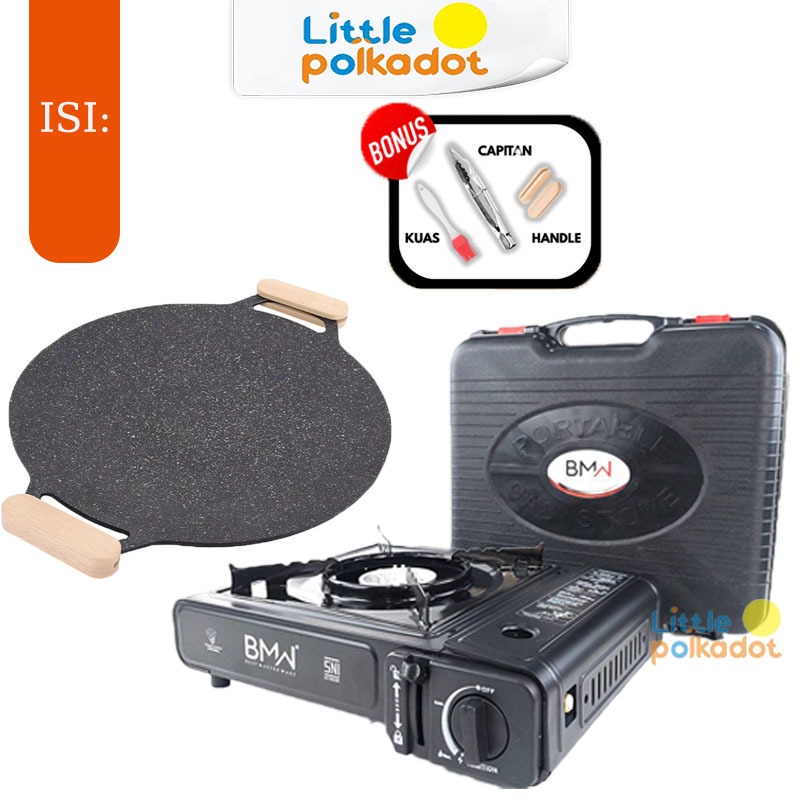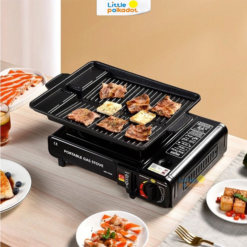 【Littlepolkadot】Set Grill Pan Dan Kompor Portablea Wooden Handle Alat Panggangan BBQ Grill Pan Set grill pan anti lengke