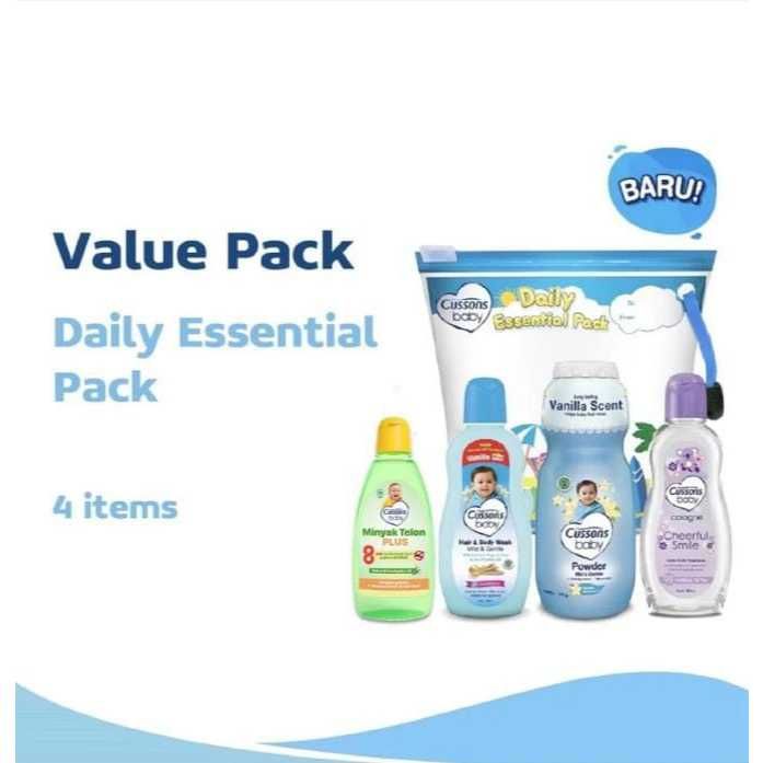 Cussons Daily Essential Mini Bag Gift Set 4in1 (Pink/Biru/Ungu) - Baby Soap, Baby Powder, Baby Oil, Baby Shampoo