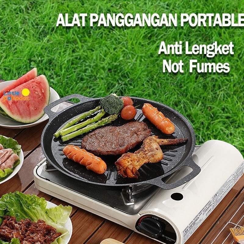 【Littlepolkadot】Panggangan Bulat Anti Lengket Alat Panggangan BBQ Grill Pan Hadiah Gratis Grill Brush Korean wajan peman