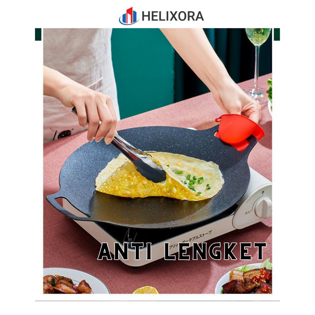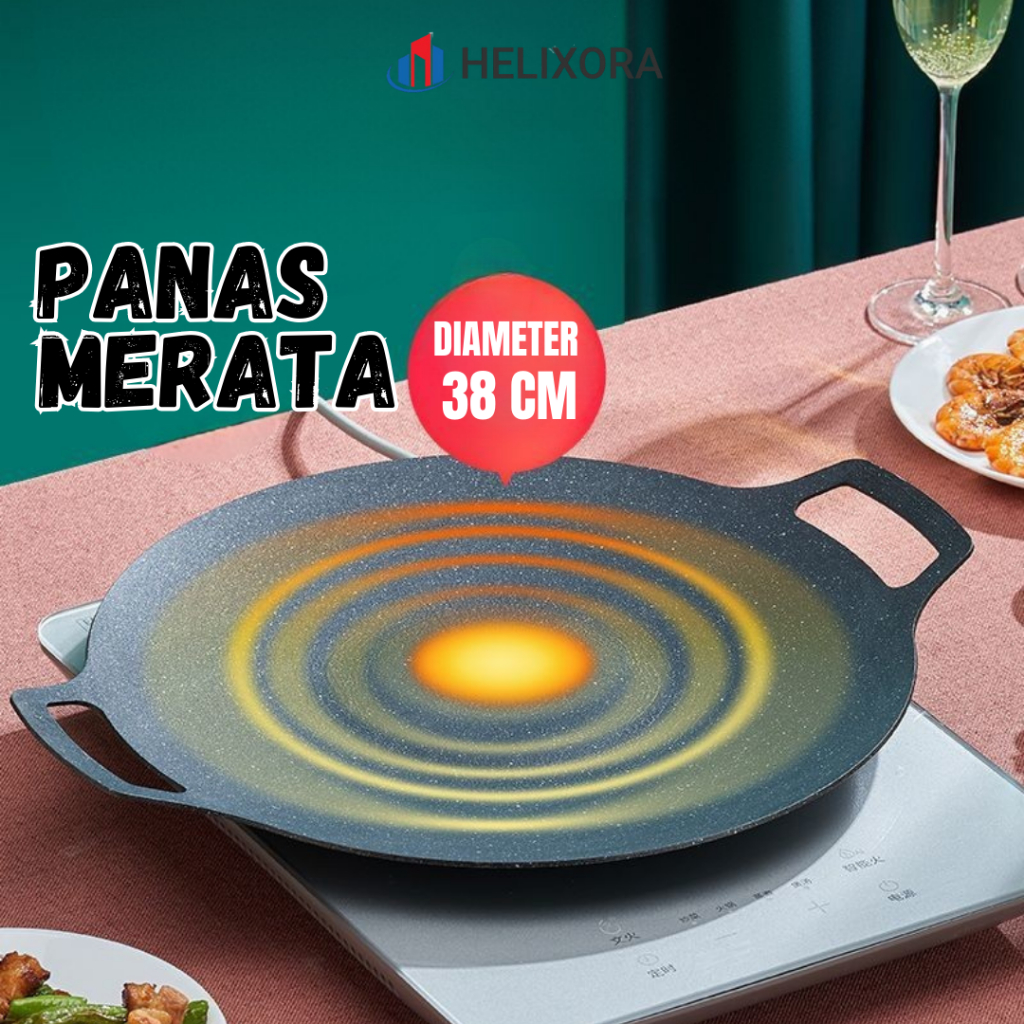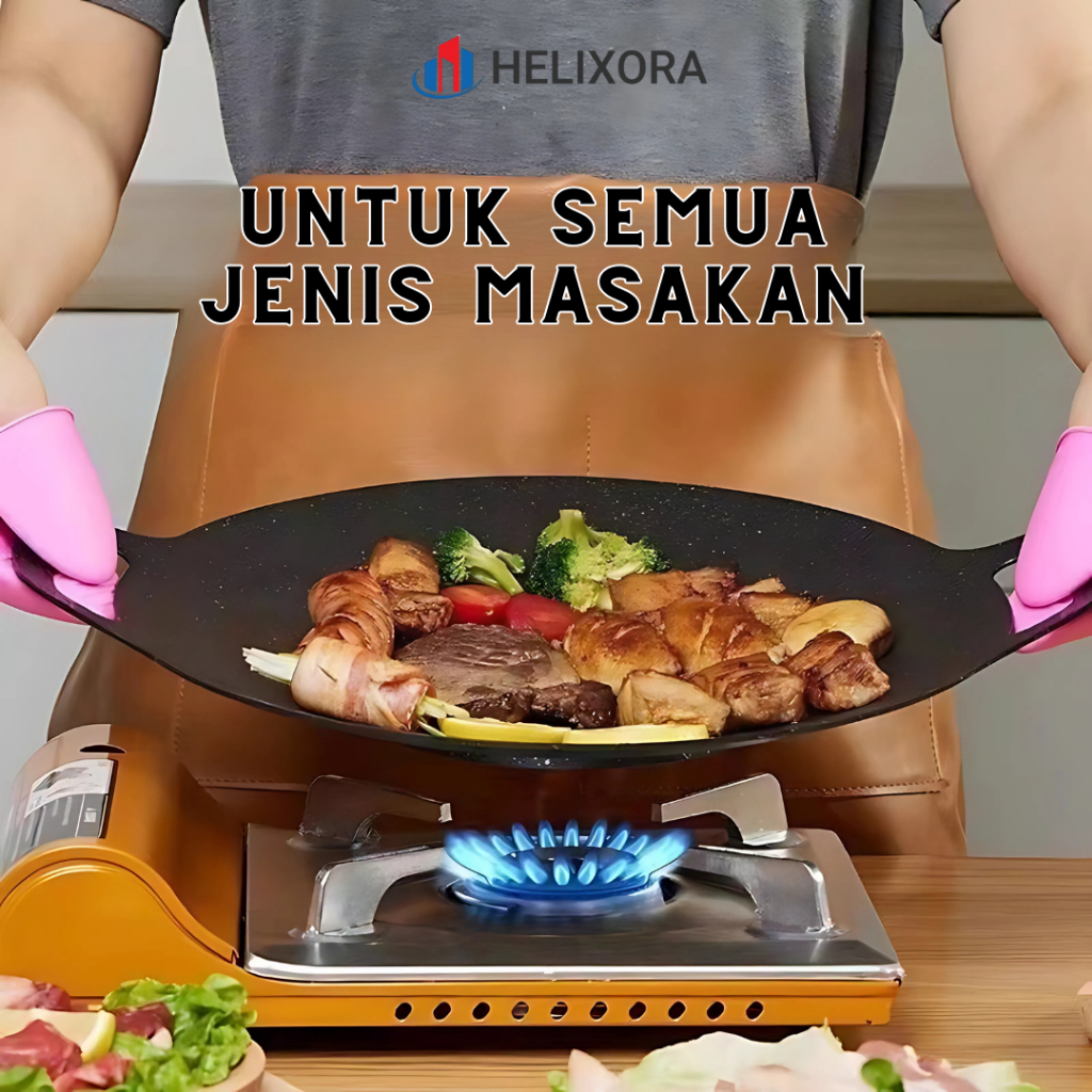 HELIXORA B2 Grill Pan 38 CM Wajan Panggangan BBQ Bulat Anti Lengket + Penjepit & Kuas